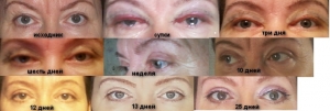 вот мне уже почти две недели. фотки пока только с 10 дневным сроком. уже синяков нет. Кахраманов так и говорил, что через дней 10 и не заметить, что была блефаропластика.