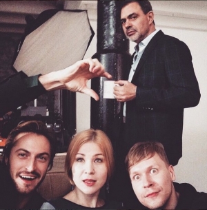 Вот забавное фото со съемок. Евгений помимо того, что красавчик еще и юморист оказывается, а Сергей Николаевич как всегда хорош и серьезен)