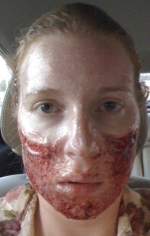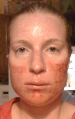 На следующий день кожа покраснела, на ней выступали кровяные пятна, которые засыхали